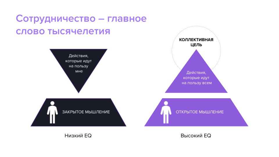 Работайте над развитием открытого мышления и чаще ставьте себя на место своего собеседника, примеряя на себя «пальто» коллеги, сотрудника, клиента. Так вы сможете находить подходящие слова, так чтобы вас слышали, понимали и принимать решения, ориентированные на общую цель.