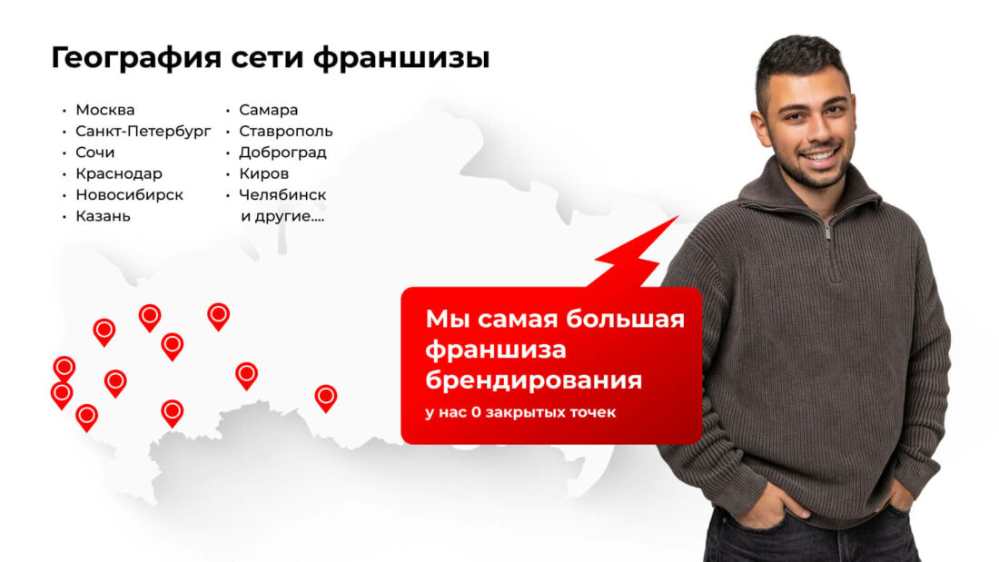 - Товарный знак, брендбук, маркетинговые материалы, оборудование, эксклюзив на регион или город.