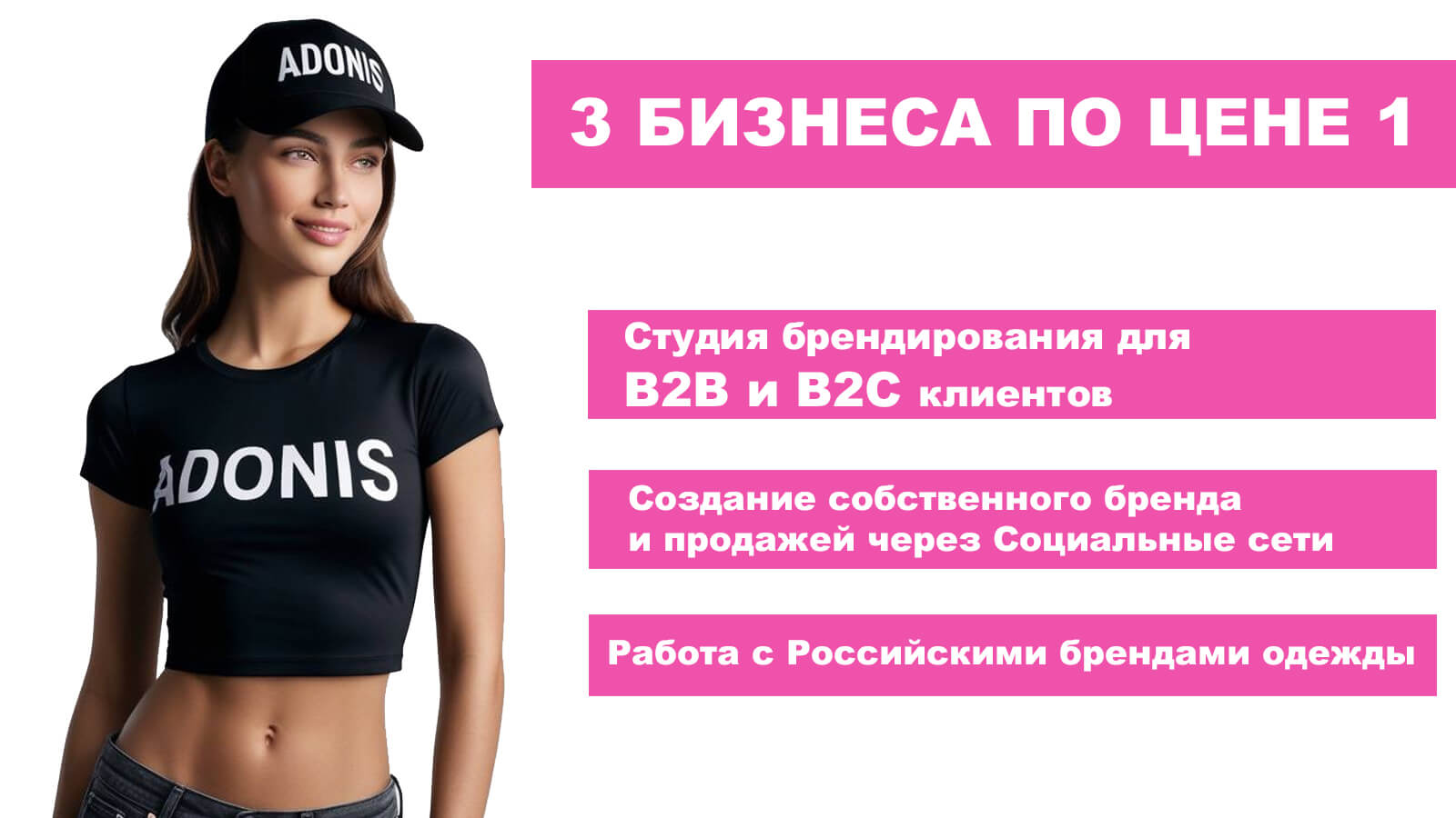 Франшиза Adonis позволяет открыть бизнес по производству брендированной продукции: работать с оптом, розницей или продавать свой бренд одежды через соцсети. Гарантируем первые заказы за 14 дней по уникальной системе!