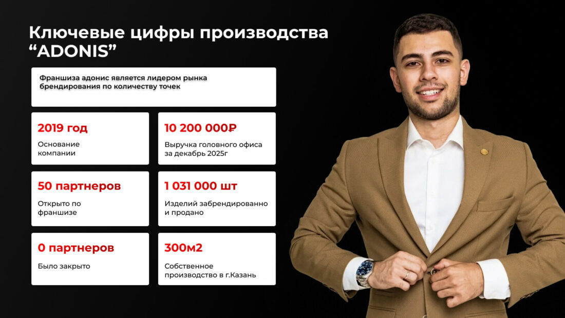 Илья Анастасов, основатель ADONIS, — «Молодой предприниматель года в Татарстане» — с самого начала ставил цель: сделать брендирование доступным, технологичным и прибыльным. И мы этого добились.