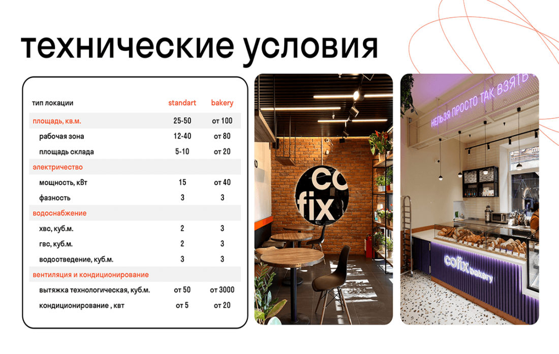Мы бесплатно подбираем для вас помещение под кофейню Cofix. Мы проводим полный анализ локации, бизнес-планирование и помогаем с арендой, чтобы ваш старт был максимально простым, быстрым и успешным.