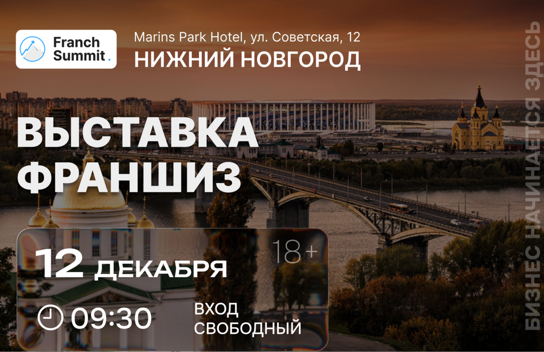 Для предпринимателей города Нижний Новгород и тех, кто планирует ими стать: 12 декабре в отеле Marins Park Hotel пройдет важное событие для мира бизнеса — выставка-конференция по франчайзингу и B2B-проектам «Franch Summit».